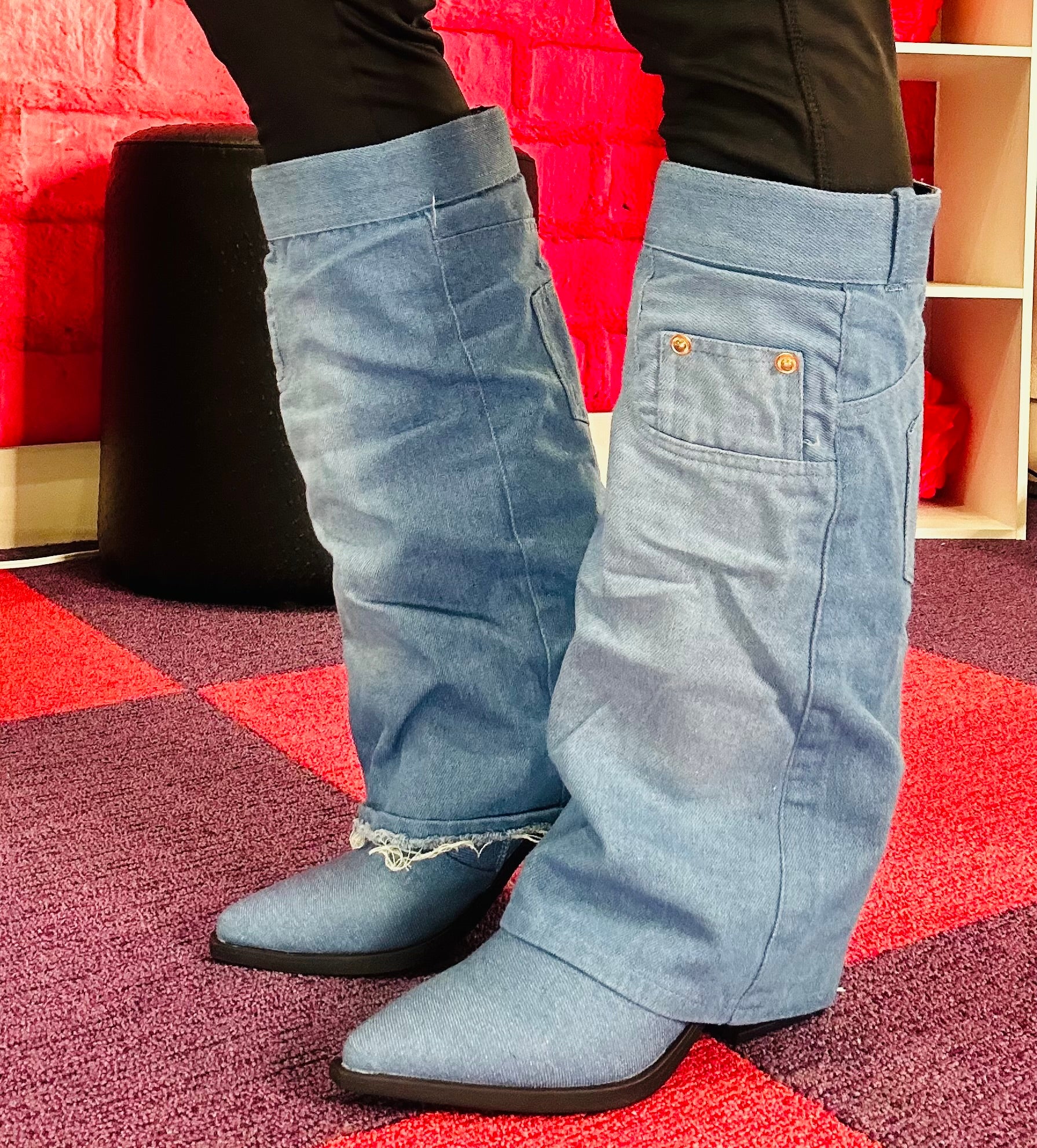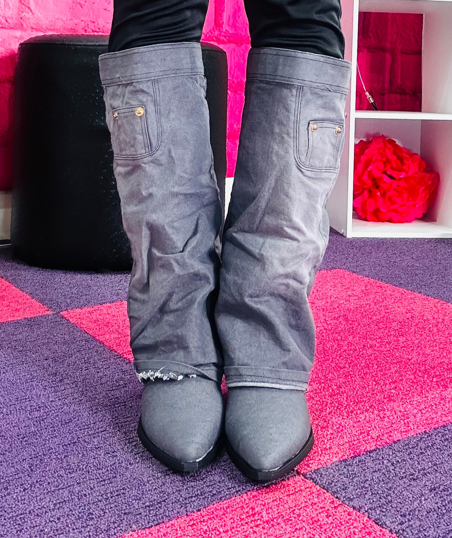 Introducing our Drape Over Knee High Sleeve Boots, crafted with exquisite Western cowboy styling for a timeless and chic look. These stunning boots feature a classic pointy toe, adding a touch of sophistication to your ensemble. The cone stacked heel, standing at approximately 3 inches, not only provides added height but also ensures stability and comfort. Whether you're looking to elevate your casual wear or complete a statement outfit, these boots are the perfect choice for any fashion-forward individual.