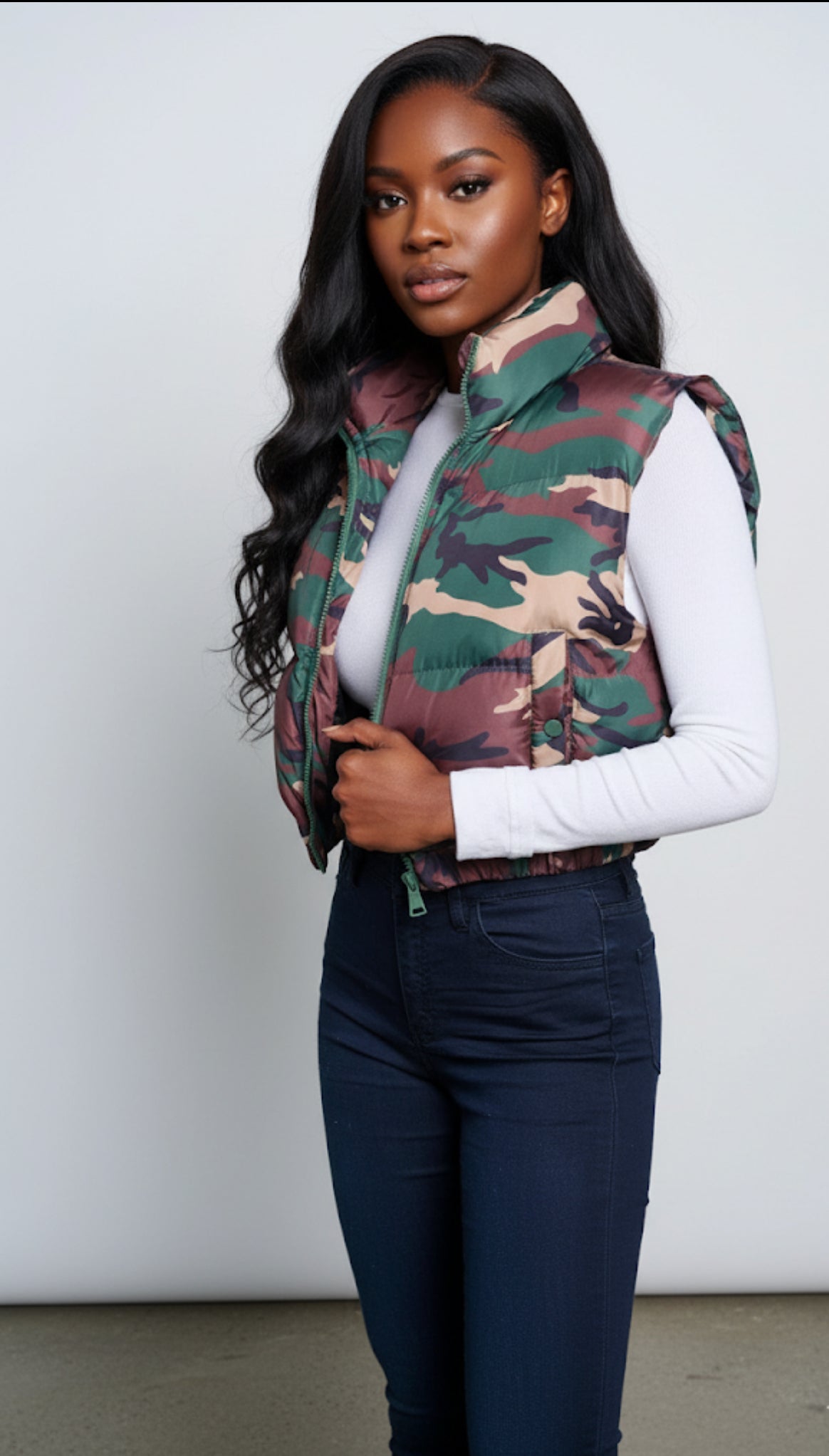 Elevate your outdoor style with our Women's Sleeveless Zip-Up Front Pockets Camo Print Puffer Vest. This rugged yet trendy vest is designed for the adventurous woman who values both fashion and functionality. Featuring a bold camo print, this vest adds a touch of modern edge to your wardrobe while ensuring you stay warm and cozy during those chilly days.