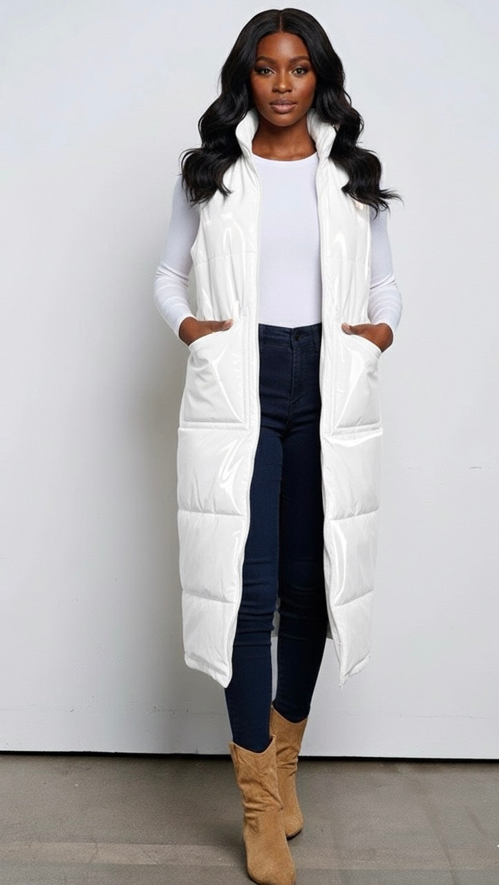 Make a bold fashion statement while embracing the colder months with this stylish and functional long puffer vest!